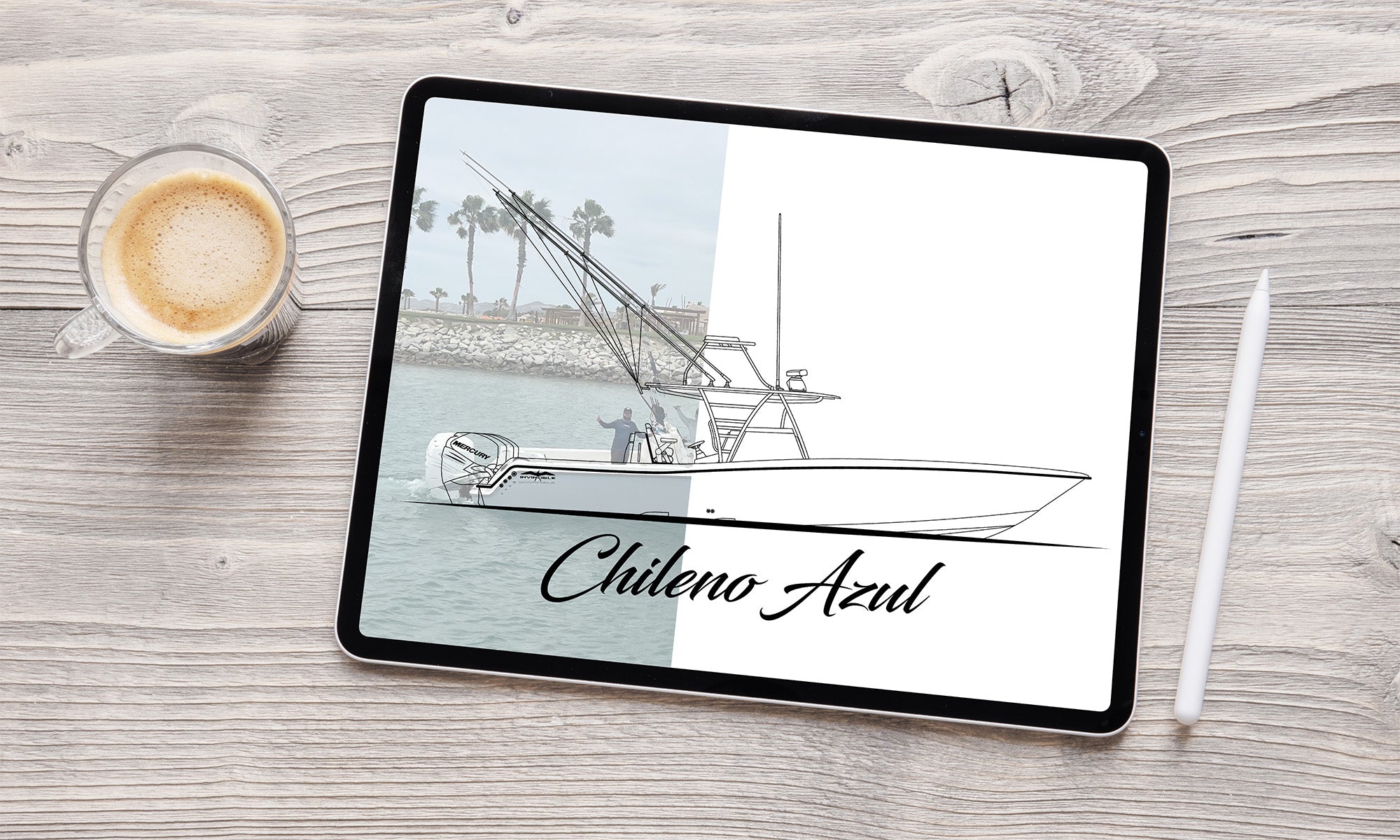 Hand-drawn from your boat photo, we capture every detail that makes it yours—from towers to transoms. Accurate, custom line work with no filters, shortcuts, or AI.