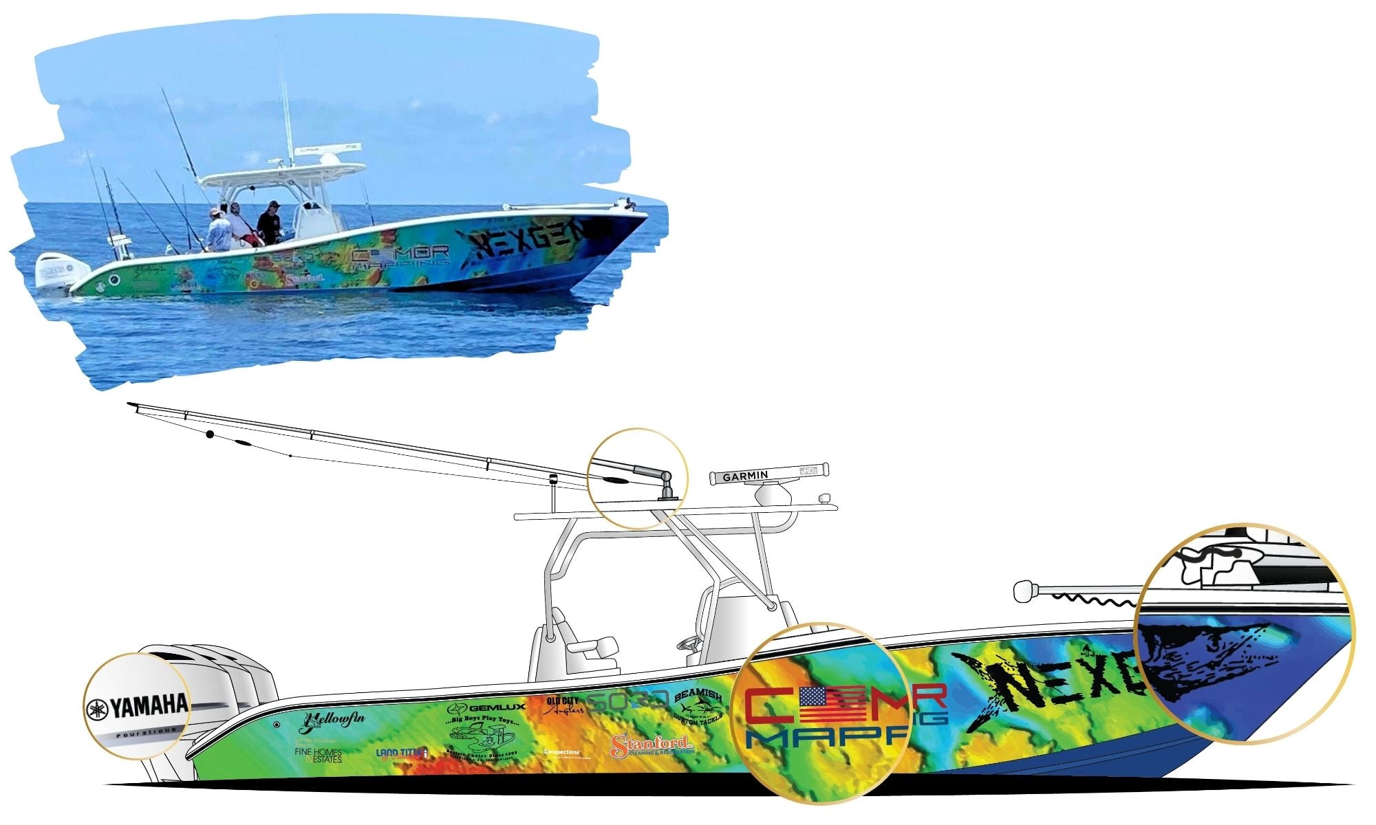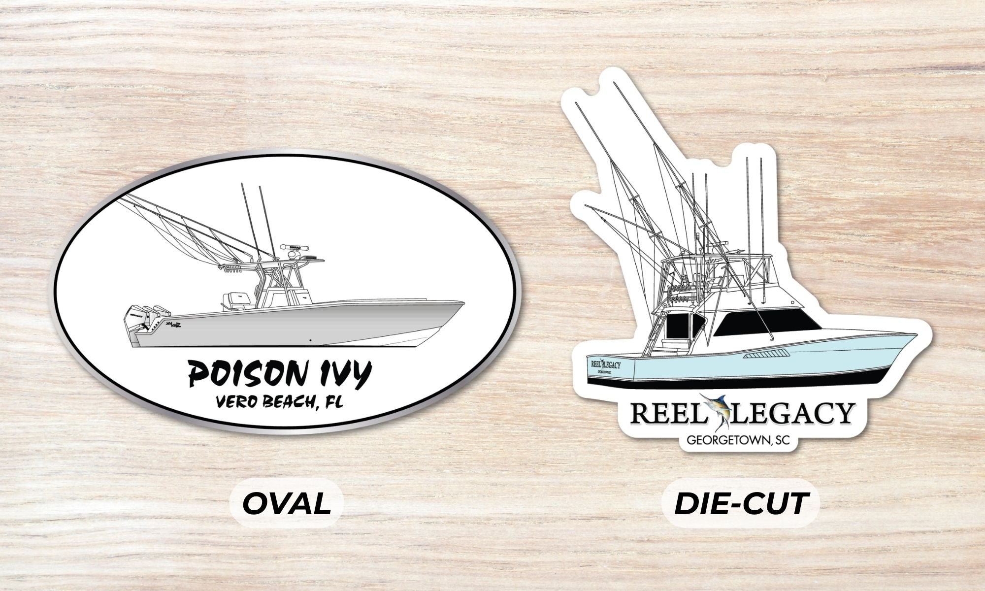 Choose from classic a oval design or custom die-cut shape that follows the contour of your boat artwork.