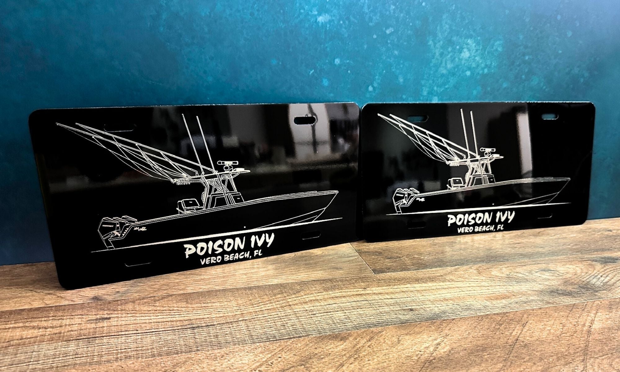 🚤 Elevate your car’s style with a custom license plate featuring your boat — hand-drawn and laser-engraved just for you. Our anodized aluminum license plates are perfect for boat enthusiasts who want to carry their passion from the water to the road.
